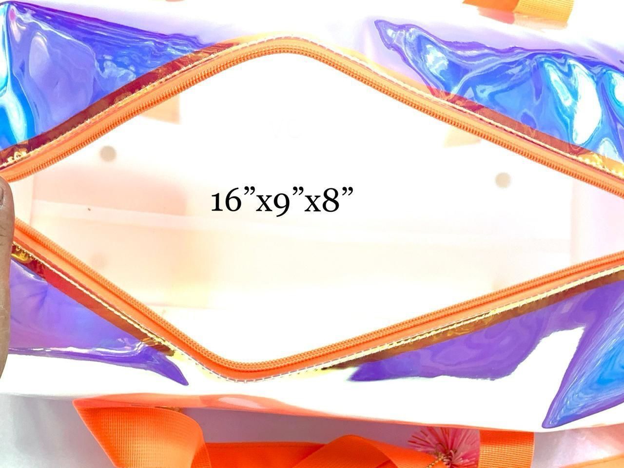 Our holographic duffle bag features a unique unicorn mermaid print that's sure to turn heads wherever you go. The holographic effect adds an extra layer of visual interest, making this bag a true statement piece.