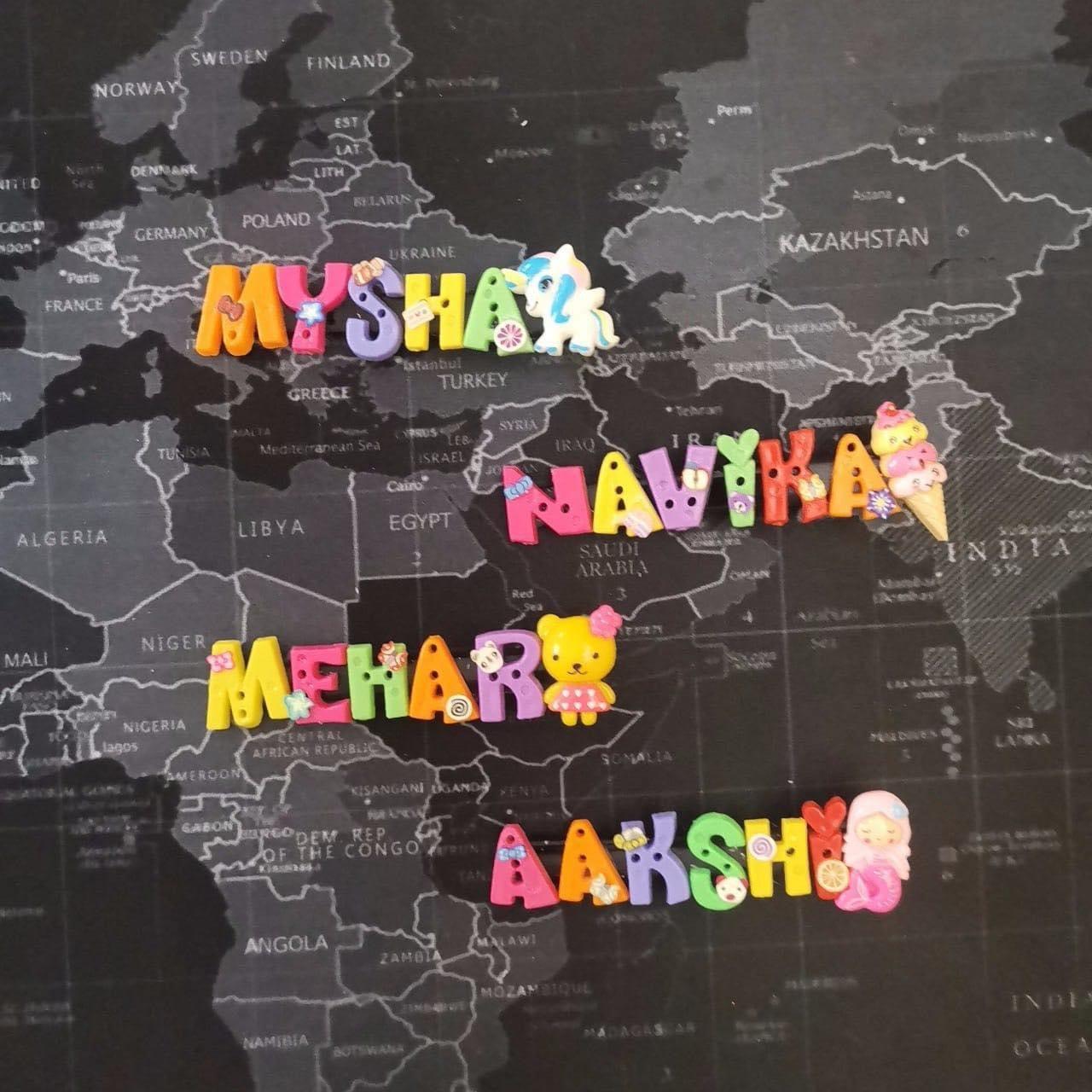 Size: 2 letters to 7 letters ending with a cartoon character (complimentary no personal choice eg flower,donut,chocolate,unicorn) we can also do