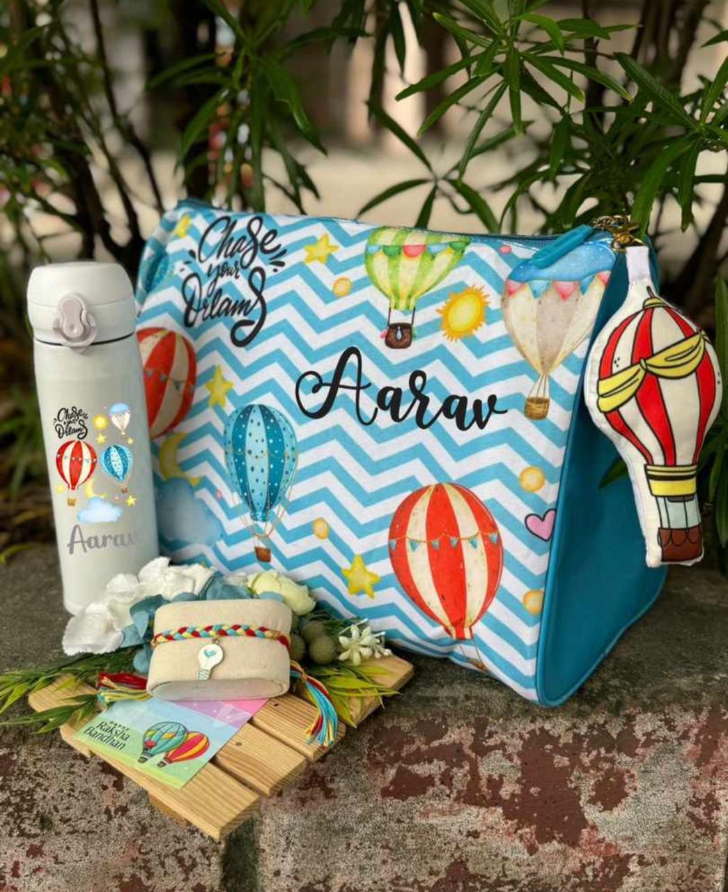 —Triangular Duffle bag with toy hanging size 13*10 inches