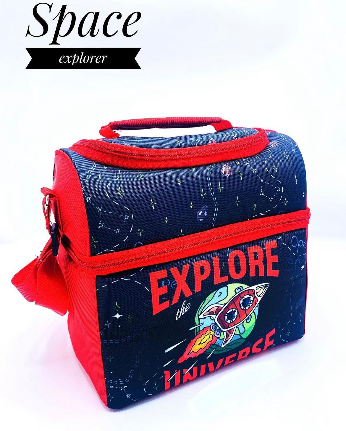 The double decker lunch bag with 2 separate compartments stacked one above the other. This helps you keep lunch and snacks together in two different compartments..