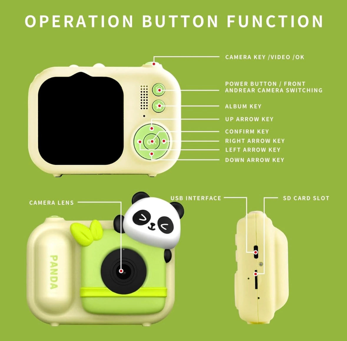The camera has an SD card slot, allowing kids to expand the storage capacity and capture a large number of photos and videos. They can easily insert or remove the SD card to transfer the files to a computer or other devices.