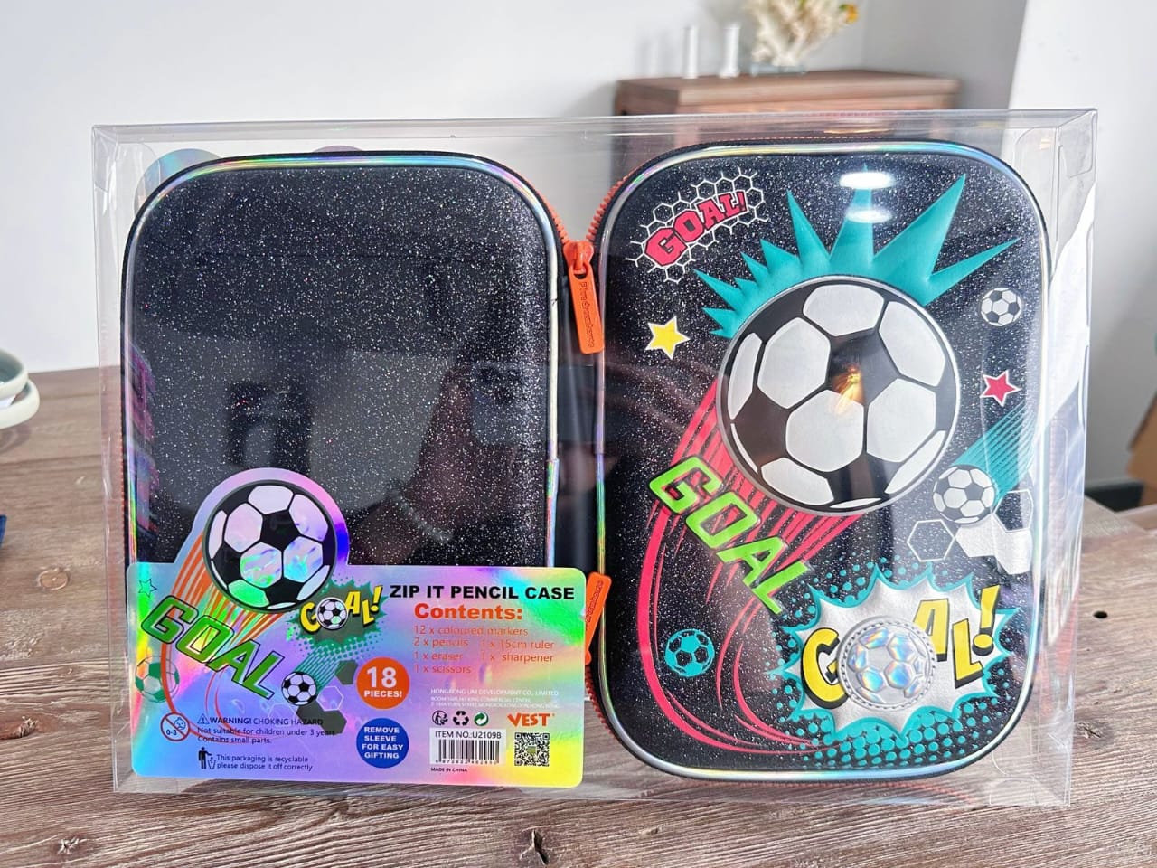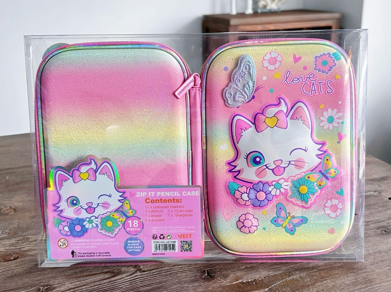 Contents : 12 coloured marker, 2 pencils, 1 ruler, 1 eraser, 1 sharpener and 1 scissors