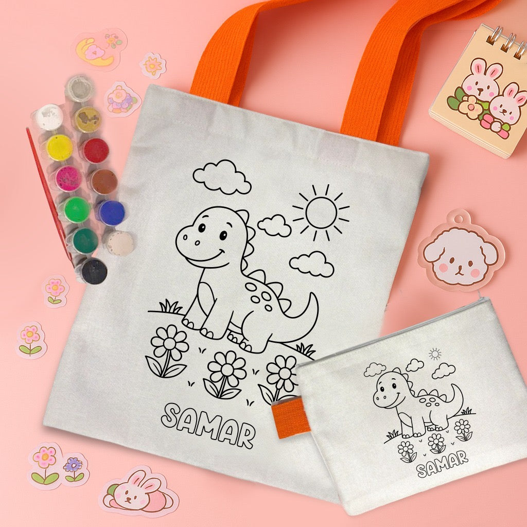 Introducing our Kids Tote Bag & Pouch Coloring Combo – a fun, hands-on DIY set that kids